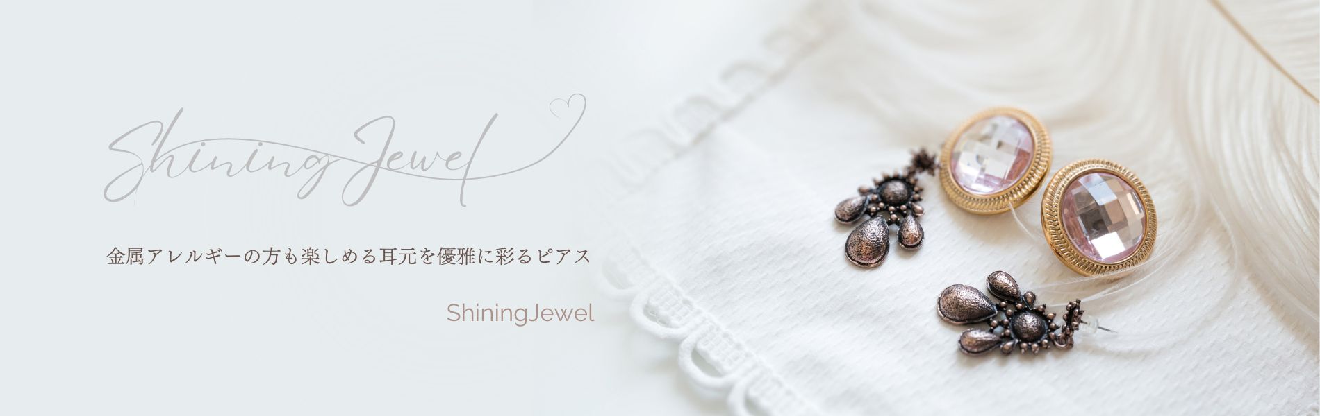 当店のピアスは金属アレルギーの方でも安心してお楽しみいただける、シャイニングジュエルピアス。